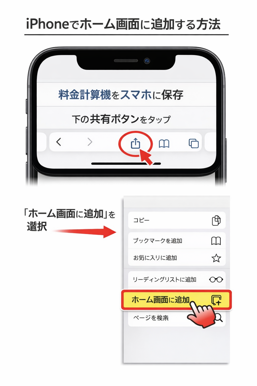 ※ホーム画面に保存すると、次回からワンタップで料金計算できます。