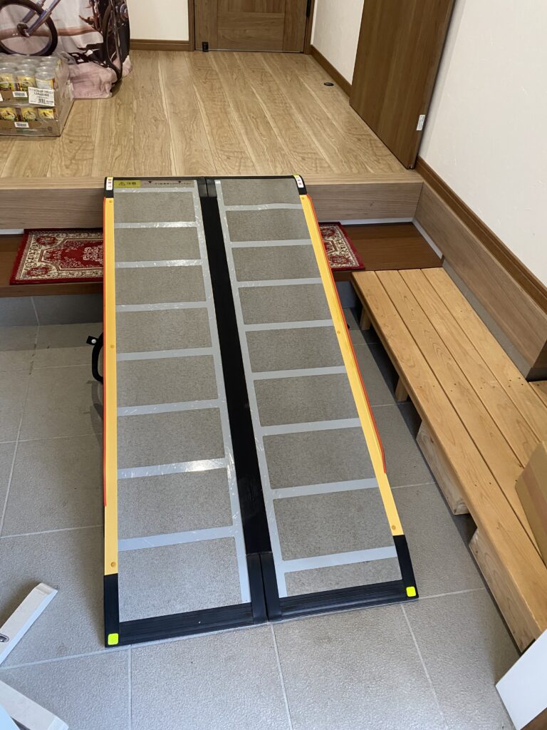 信頼のあるメーカーが出している車いす専用の移動用スロープです。非常にしっかりと作られており150㎝の全長を活かして1~2段の段差を超えていきます。
